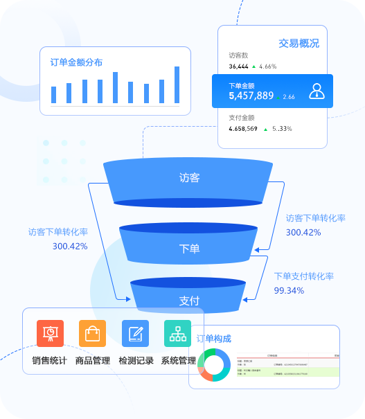 多樣化的銷售方式,生成后臺交易環(huán)節(jié)的關鍵數(shù)據(jù),助你快讀指定最佳售賣策略,提高客單價喝應收,拓展更多變現(xiàn)可能性。